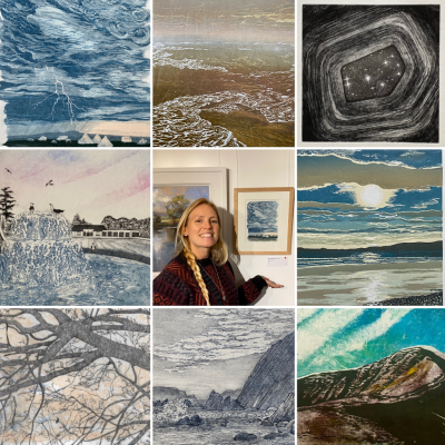 Drypoint print with watercolour detail